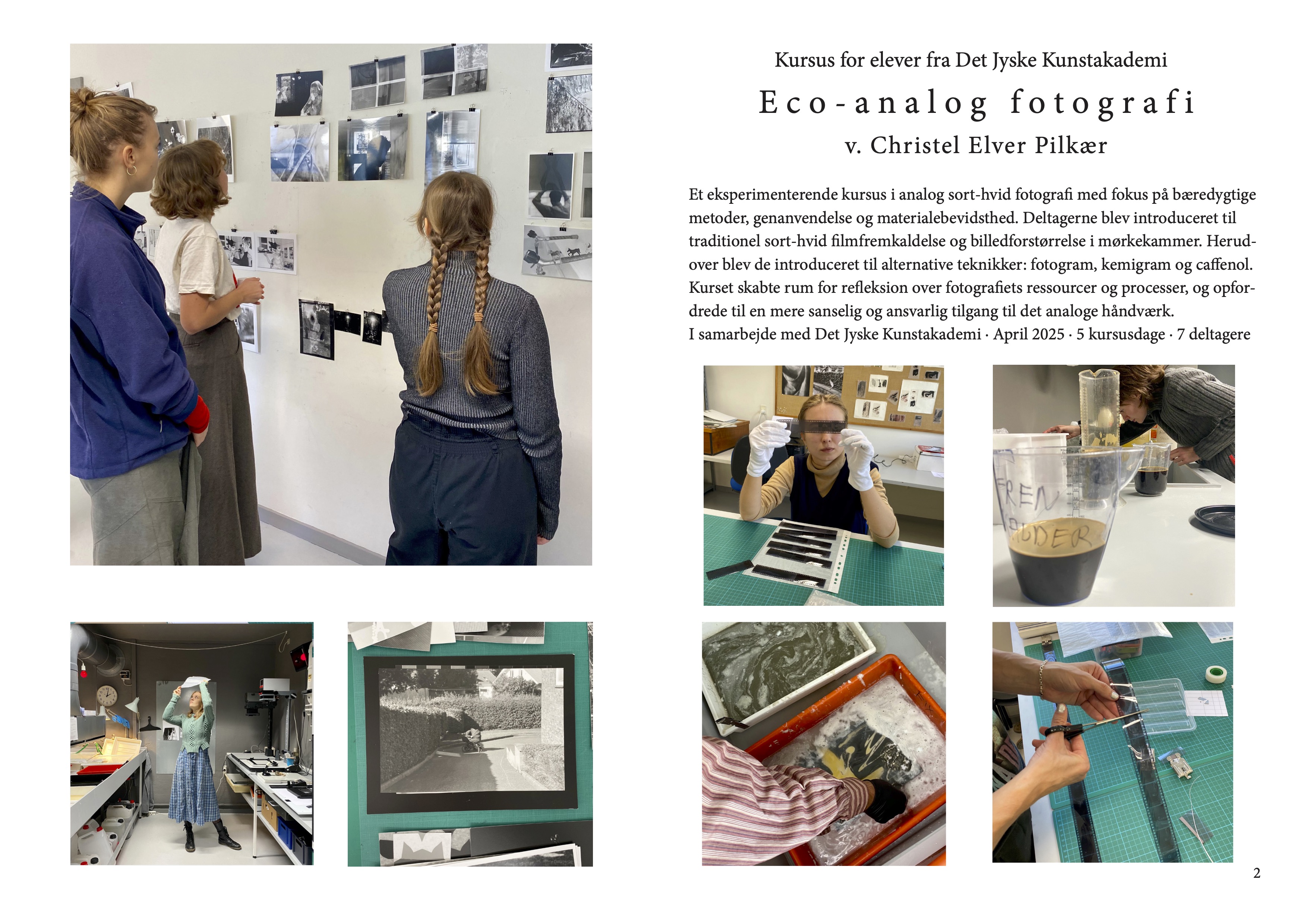 - sept. 2025: kursus for Det Jyske Kunstakademi: eco analog fotografi m. Christel Elver Pilkær
