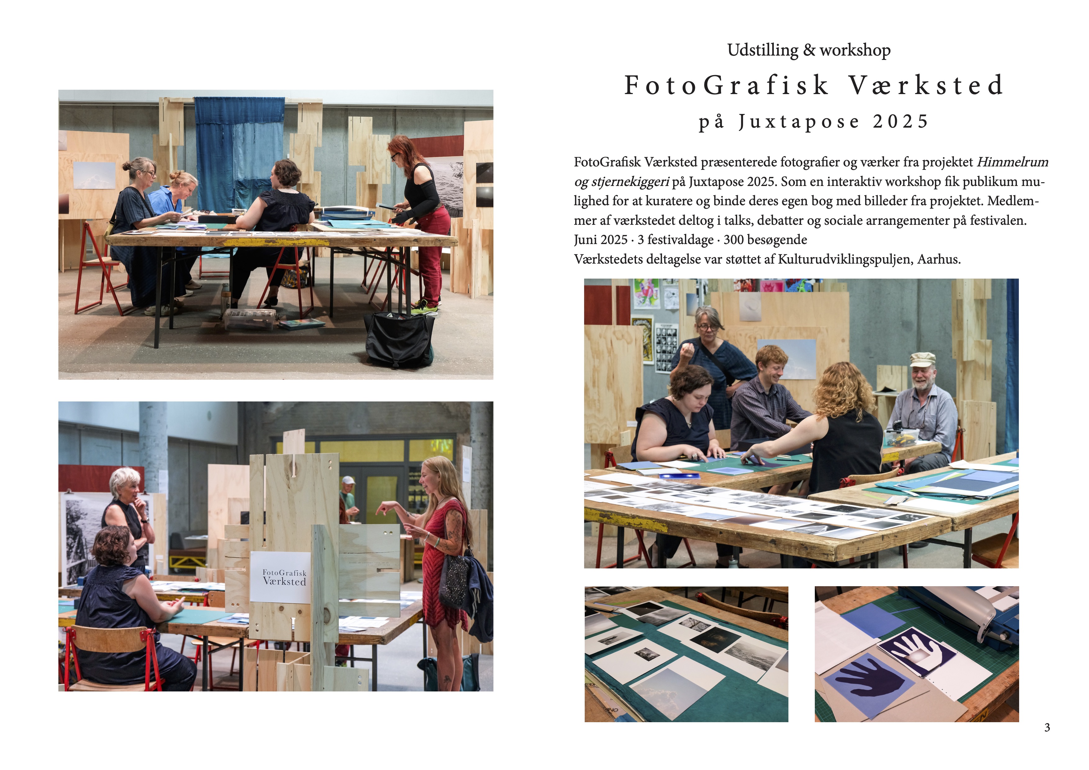 - juni 2025: udstilling og workshop på Juxtapose 2025, Godsbanen, Aarhus, DK