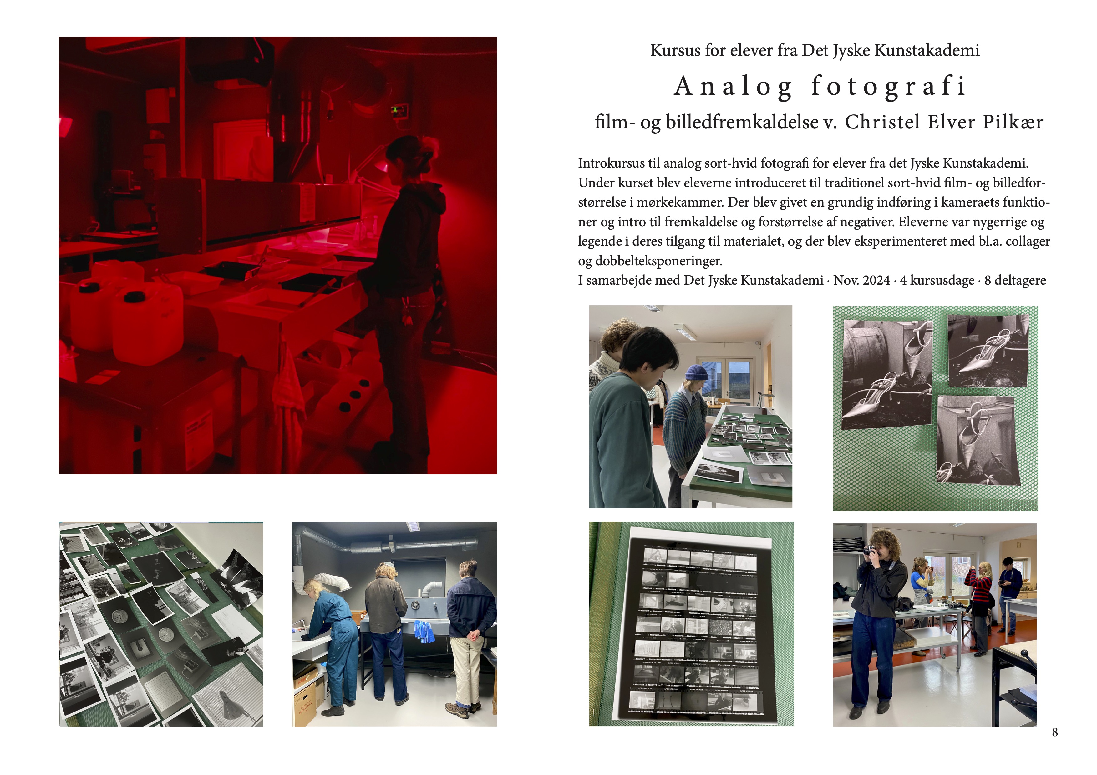 - nov. 2024: kursus for Det Jyske Kunstakademi: analog fotografi – film- og billedfremkaldelse